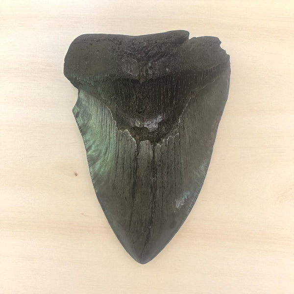 The size of Megaladon teeth is measured in inches, although outside the US it is common to use cm/mm but for the most part, people use inches as a unit of measure. Megaladon teeth are measured on a slant, using the longest side as the length. Megaladons can reach a maximum length of 60-70 feet long. Compared to the great white shark today that can reach up to 21 feet.