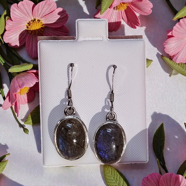 Meet your new favorite earrings—labradorite beauties set in sterling silver! Known for its mesmerizing flash of color and mystical allure, labradorite has long been cherished by crystal enthusiasts for its grounding and protective properties. These playful earrings combine the stone's natural iridescent shimmer with the timeless elegance of sterling silver, making them perfect for anyone seeking a little magic in their everyday accessories. Whether you're drawn to their stunning appearance or their spiritual significance, these earrings are sure to become a treasured part of your collection. Light, comfortable, and absolutely captivating.
